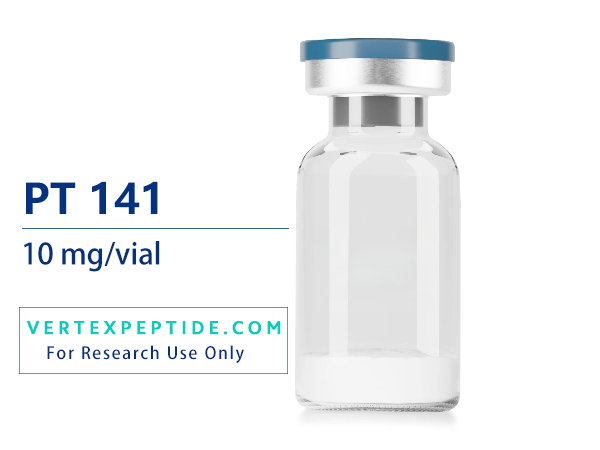Each vial contains 10mg of high-purity lyophilized PT-141, suitable for reconstitution under sterile laboratory conditions.